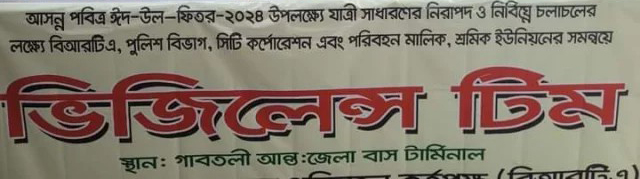 এসময় ভিজিলেন্স টিম অতিরিক্ত ভাড়া দাবি না করা, বাসের ছাদে যাত্রী পরিবহন না করা, ধারণ ক্ষমতার অতিরিক্ত যাত্রী ঠেকাতে বাস টার্মিনালে ভিজিলেন্স টিম সেবায় নিয়োজিত থাকবে।